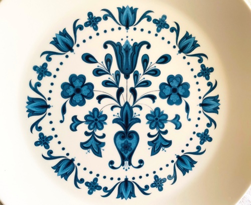 progression ブルー花柄プレートの