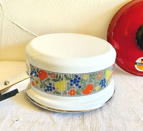 西ドイツ ロールマン社製 フルーツ柄 片手ホーロー鍋