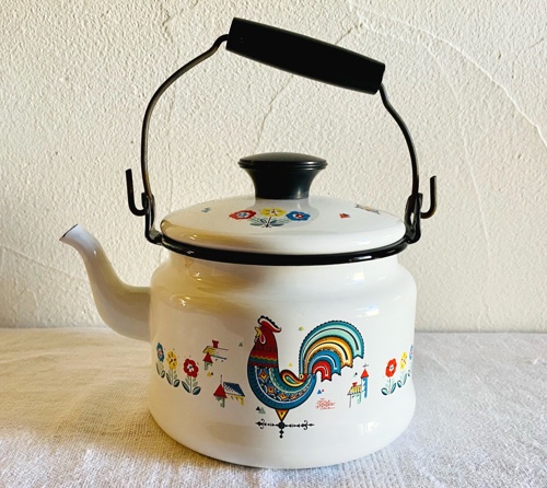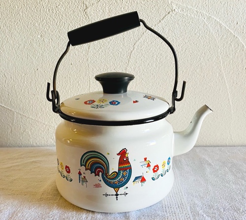 スウェーデン BERGGREN 可愛いホーローケトル ニワトリとお花