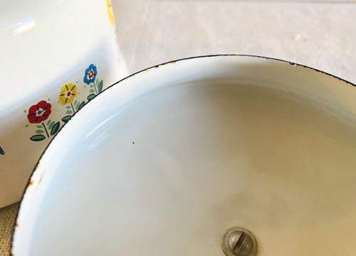 注ぎ口に近い箇所にホーローの剥がれが