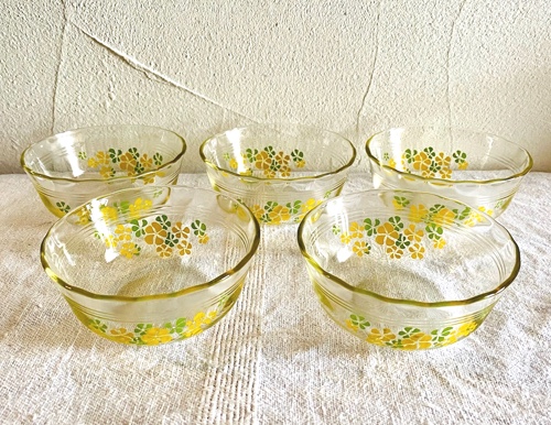 パイレックス カスタードカップ 花柄 耐熱ガラス5個セット